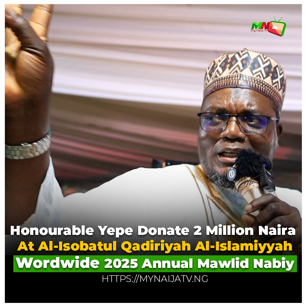 Honourable Yepe Donate 2 Million NairaAt Al-Isobatul Qadiriyah Al-Islamiyyah Wordwide 2025 Annual Mawlid Nabiy